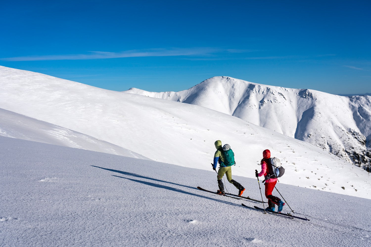 The Sassolungo men's jacket is lightweight, warm, and windproof, made from recycled materials, ideal for ski touring and outdoor activities in cold conditions.