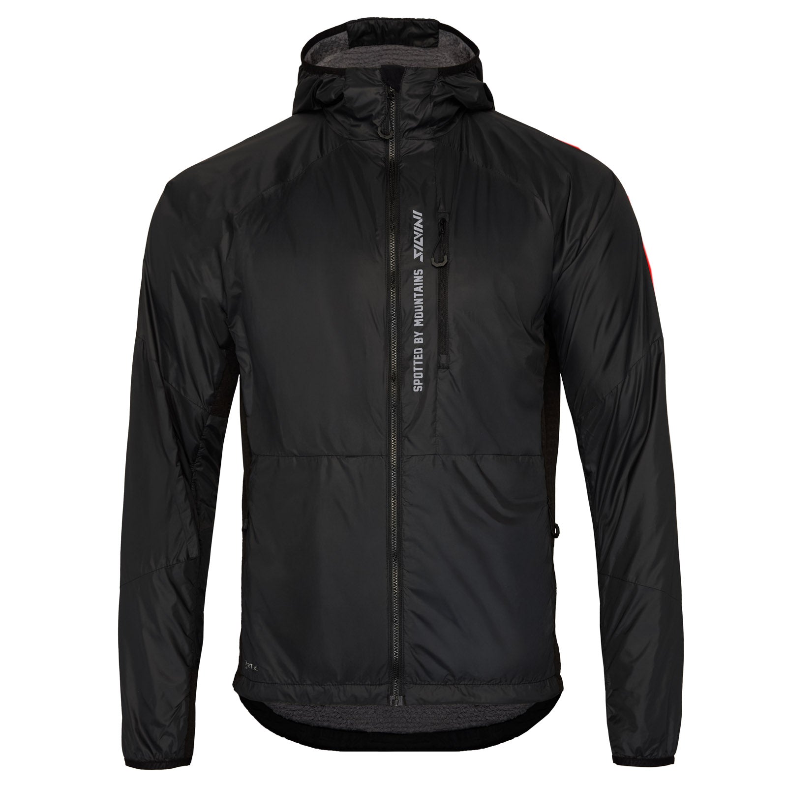 The Sassolungo men's jacket is perfect for demanding outdoor activities such as ski touring, hiking, or other movements in cold and windy conditions. It is made from innovative recycled materials, with the main fabric being Pertex® Quantum NetPlus® made from recycled fishing nets, providing excellent wind and water resistance while remaining highly breathable. The warm Primaloft® Evolve Insulation Active lining ensures thermal comfort, maintaining optimal body temperature during activity without adding extra weight. Stretch Powertherm side panels enhance mobility and comfort during movement. The integrated slim hood fits securely on the head, protects the neck, and provides reliable weather protection. The hem is adjustable with a stretch cord for a perfect fit and extra protection against cold. The jacket features two front zip pockets and one chest pocket for secure storage of essentials. Reflective details increase visibility and safety in low light. Combining lightweight construction, thermal insulation, and functional features, the Sassolungo jacket is an ideal choice for ski touring and other outdoor activities from autumn to spring, providing maximum comfort, protection, and freedom of movement.