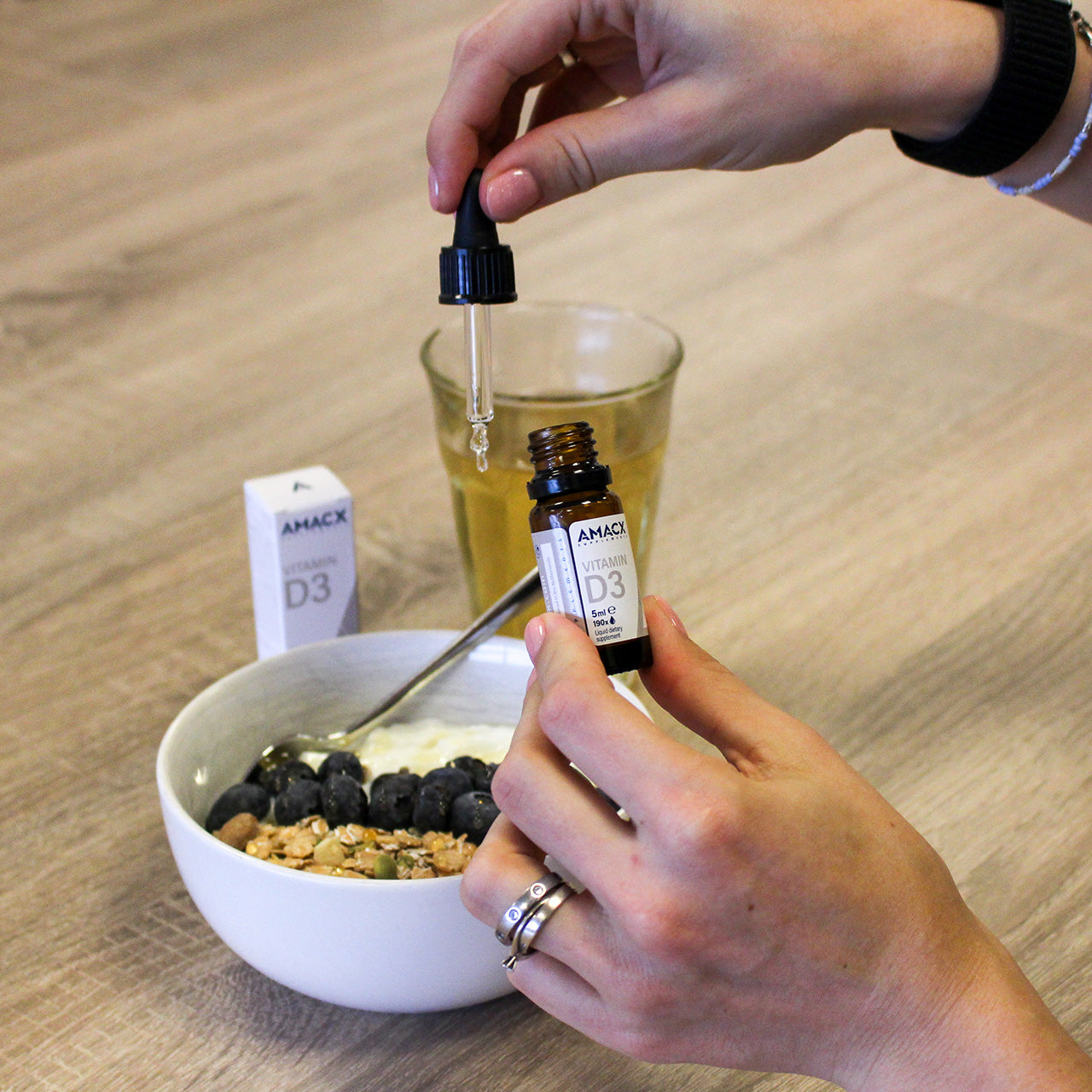 The dosage of Vitamin D3 is very convenient with the included dropper. Additionally, the drops are tasteless, allowing you to add them to any beverage or a bowl of yogurt or oatmeal.